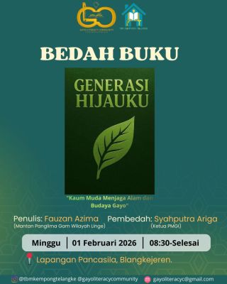 SigapNews.co id : Gayo Lues 1 Februari 2026 | Upaya membangun kesadaran ekologis tidak cukup hanya dengan seruan moral atau kampanye sesaat. Dibutuhkan ruang literasi yang mampu menghubungkan pengetahuan, nilai, dan tindakan. Hal inilah yang mengemuka dalam kegiatan Bedah Buku Generasi Hijauku (Episode 1) yang menghadirkan Syahputra Ariga, Ketua Umum Perkumpulan Mahasiswa Gayo Lues Se-Indonesia (PMGI), sebagai pemateri utama.