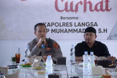 ACEHNEWS I LANGSA - Polres Langsa mengadakan Jumat Curhat bersama sejumlah unsur masyarakat Peukan Langsa di Habibie Kupi, Jl. Iskandar Muda Gampong Blang Pase Kec. Langsa Kota, Kota Langsa, Jumat (3/2/2023)